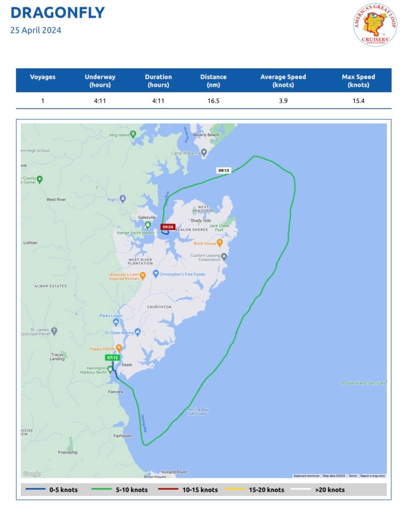 On our last day, we had a quick two hour cruise to our marina in Shadyside, MD. That day, the bay was throwing a solid 15+ from the North East. Once we got out of Herring bay, we encountered a nasty 1-2 foot chop. Fortunately, we only had to power through that for about 45 minutes. We entered the West river and DRAGONFLY found her new home!